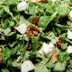 Feldsalat mit karamellisierten Walnüssen, Granatapfel, Feta & Honigdressing